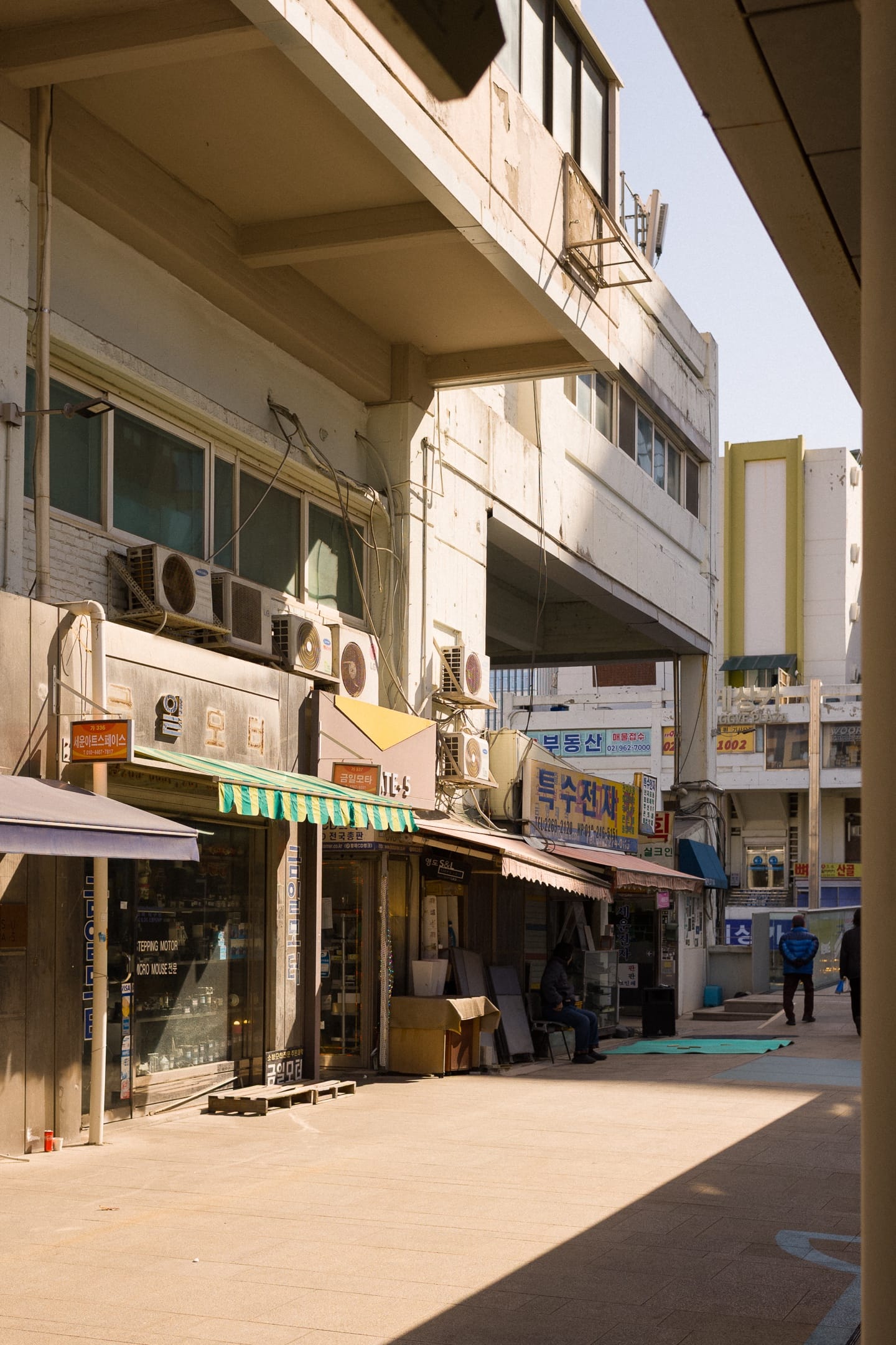 Тут дед сидит на стуле и абсолютно без стеснения рассматривает туриста. Напротив него на 10-м этаже к-поп идол рекламирует кофе. А внизу люди в костюмах покупают этот кофе на обеденном перерыве.