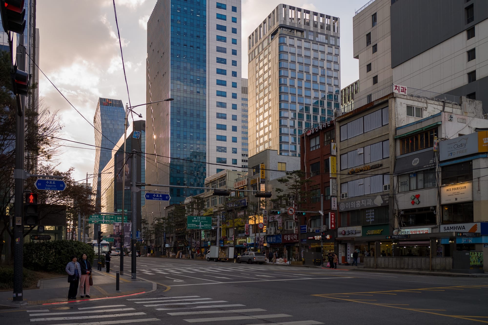 В Сеуле довольно чисто. Очень много зелёных уголков, по городу разбросаны небольшие скверы с уличными тренажёрами. С другой стороны, тот же Гангнам застроен высотками и иногда кажется каким-то «Мурино 2.0»: внутри красивые закрытые дворы, но вход только для жителей. И при этом рядом может стоять Burger King, а на парковке — машины за сотни тысяч евро.